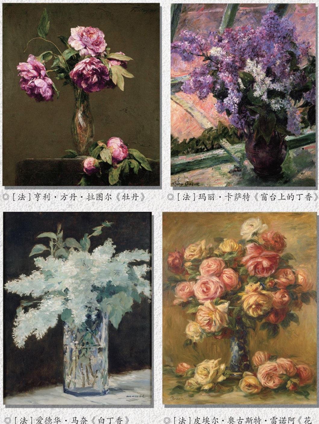 十九世纪晚期,印象派画家登场,植物更是“扬眉吐气”,它们常常在画中担任绝对的主角,瓶花又一次在画家们笔下绽放。此时的画家们并不像两百年前的同行那样精心描摹各种花卉的形态,企图让它们在画布上常开不败,他们更想要捕捉植物在不同光线之中的色调变化,探索植物与环境之间色彩的协调。 《瓶里的玫瑰》 守护花园 莫奈大概算得上印象派画家中最“尊重”植物的一位了。1883年,四十三岁的莫奈和家人一起搬到