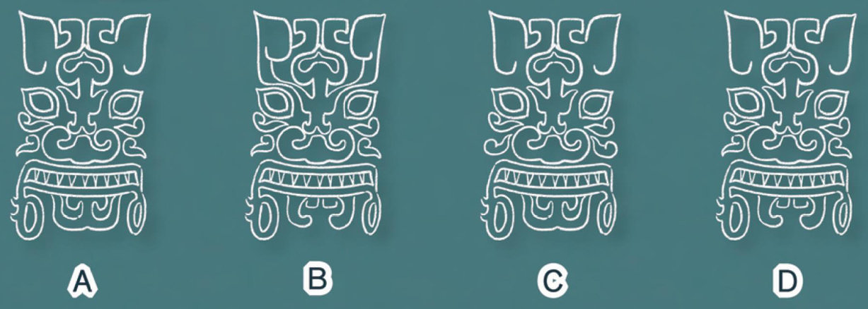 石昴(mao)遗址是中国已知规模最大的史前城址,距今约四千年,被称为“石破天惊”的重要考古发现。今天,我们一起走进这座“石头城”,探寻中华文明的脉络。 石雕图案画不好 难度:★★ 石昴城由皇城台、内城和外城三部分组成,城外还有数座用于预警的“哨所”。来到皇城台,你会发现周围是阶梯状的护坡石墙,石墙旁立着一座石雕。你对石雕上的图案很感兴趣,决定将它画下来带回去研究。但你并不精通画,四个画像中只有