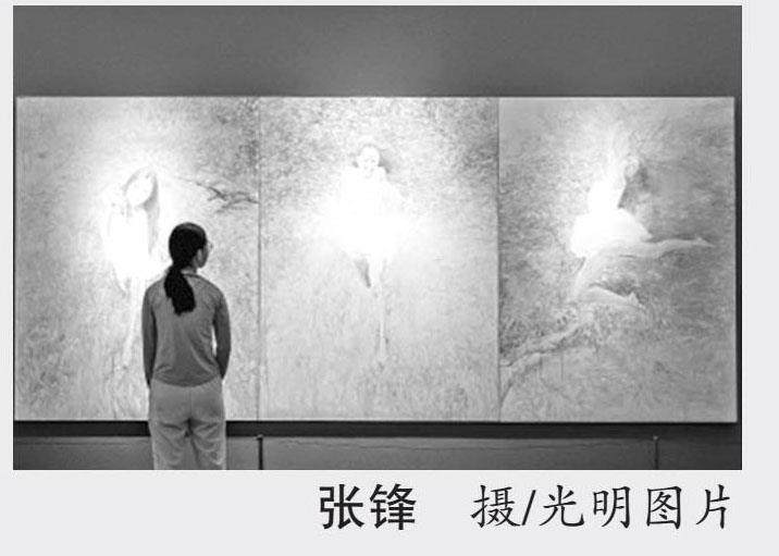 2025年6月24日,在江苏省苏州市姑苏区,“人在春山外——何多苓作品展”于苏州博物馆本馆开展。展览共展出何多苓作品近30件,其中《春风已经苏醒》和《雪雁》两件作品在中国现当代美术中具有重要意义。展期将持续至9月7日。图为6月24日,江苏省苏州市姑苏区,观众在苏州博物馆本馆“人在春山外——何多苓作品展”中观看《庭院回忆卷》。