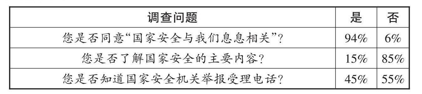 国家安全是民族复兴的根基,是实现国家利益最根本的保障。国泰民安是全体人民的共同愿望,国家安全与每个人息息相关。围绕国家安全,某校八年级(1)班开展了议题探究活动。 【了解国家安全】 八年级(1)班就全校学生的国家安全意识展开了调查,结果如下表所示。 (1)上述调查结果说明了什么? 【保障国家安全】 法律为国家安全提供有力保障。 (2)运用所学知识,说明保障国家安全有何重要意义? 【维