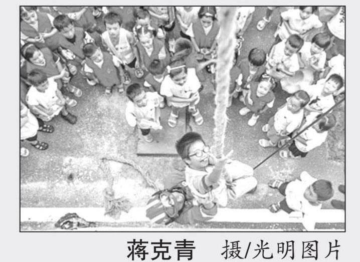 2025年7月25日,湖南省永州市道县消防救援大队开展“暑期消防安全体验营”活动,孩子们在消防救援人员的带领下,通过学习消防知识、体验消防装备操作使用和绳索攀爬技能等项目,提高消防安全意识和自救能力。图为孩子们在消防救援人员的协助下学习绳索攀爬技能。